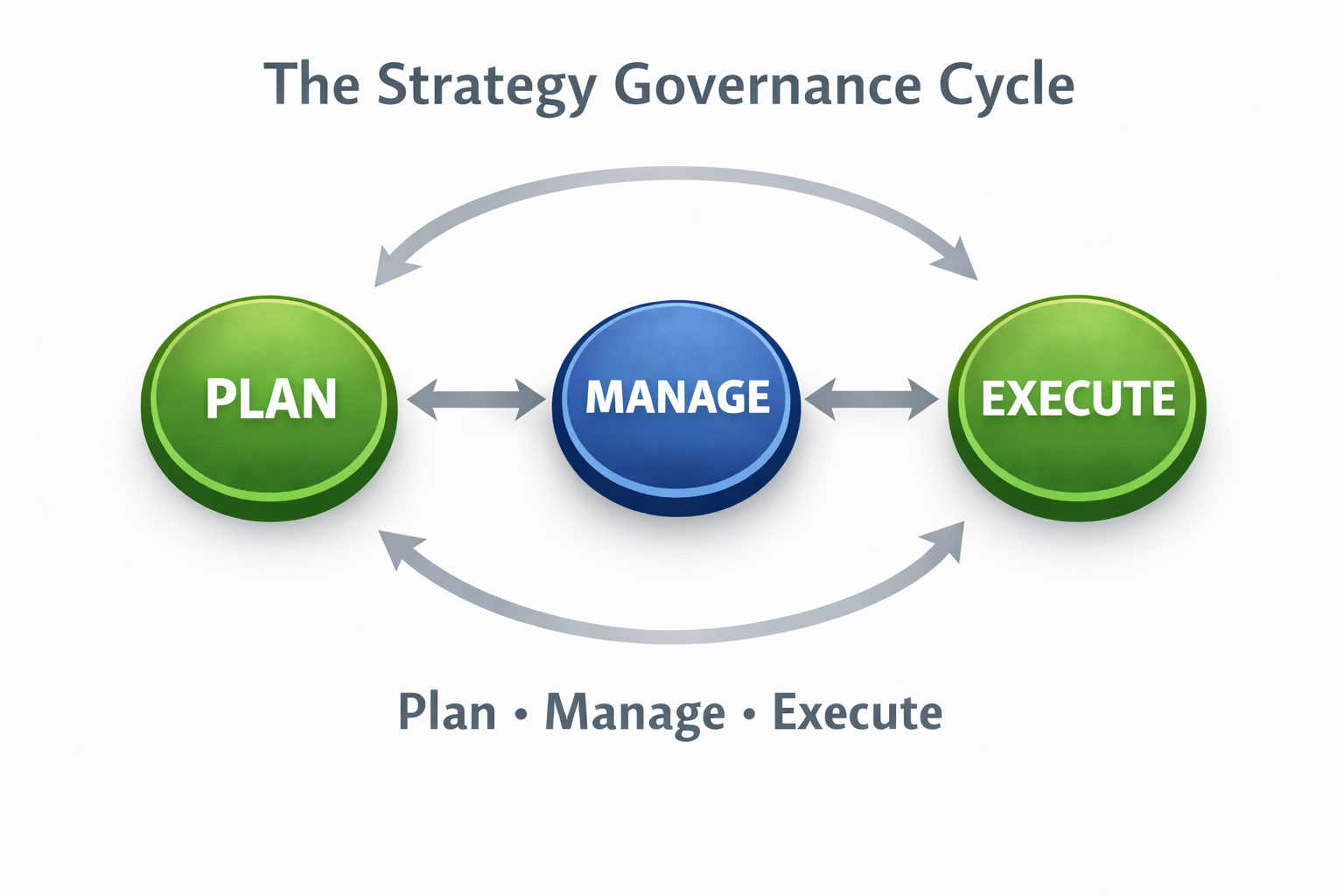 Most strategies fail not from lack of vision, but from lack of disciplined execution and active governance. Dynamic Strategy replaces static, long-range planning with a living governance system built on a continuous cycle of Plan → Manage → Execute. When paired with Foundational Thinking and The SIMPL Method, it becomes the operational engine for sustainable growth.